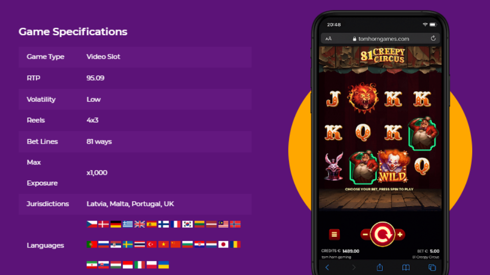 81 Creepy Circus is built on a classic 4×3 reel setup with 81 ways to win, designed to keep gameplay familiar yet refreshingly unique. The game rewards you by forming winning combinations through a left-to-right matching mechanic.
