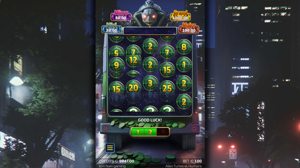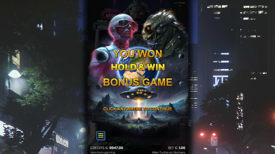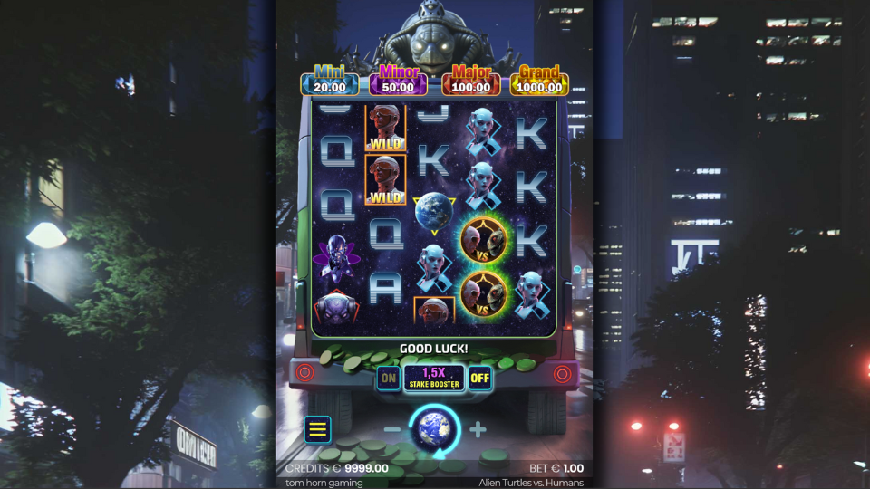 Prepare for an intergalactic showdown in Alien Turtles vs Humans, where Tom Horn Gaming pits quirky extraterrestrial reptiles against desperate earthlings in a battle for cosmic supremacy.