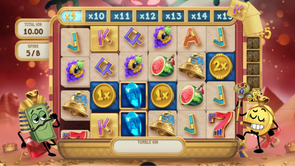 The Bill & Coin 2: Mummy Mischief slot takes the cheeky duo – Bill the moustached banknote and Coin the cigar-smoking penny – on an Egyptian expedition into pyramids and tombs laden with treasures. The visuals mix classic fruit-slot symbols with Egyptian motifs namely scarabs, mummies, hieroglyphs, giving an adventurous spin to what’s familiar.