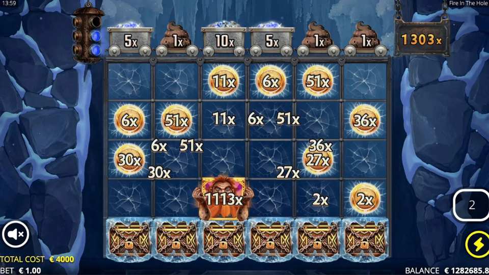 - Buried Features: Symbols trapped in ice for example the Wild, xSplit, Win Multiplier, xHole, Bonus, Max can be activated by xBomb Wild or xSplit except Win Multiplier. Win Multiplier boosts payouts by up to x100; Max symbol grants 70,000x the bet when fully revealed.