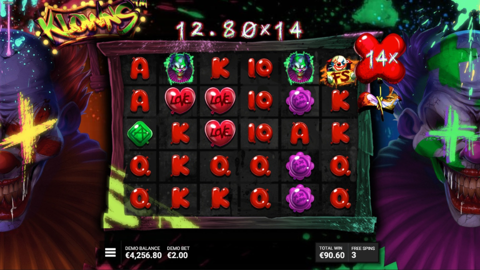 In Klowns, wins are achieved by landing matching symbols anywhere on the reels, thanks to its scatter pays system. Wild symbols substitute for most others, enhancing your chances of forming winning combinations. The mechanics are straightforward, allowing you to focus on the game’s playful chaos without unnecessary complexity.