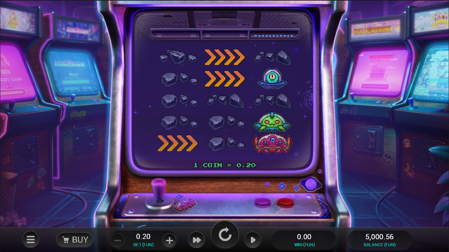 - Bet Option: Select your desired bet option from a range starting at a minimum of 0.20 coins to a maximum of 100.00 coins per spin.