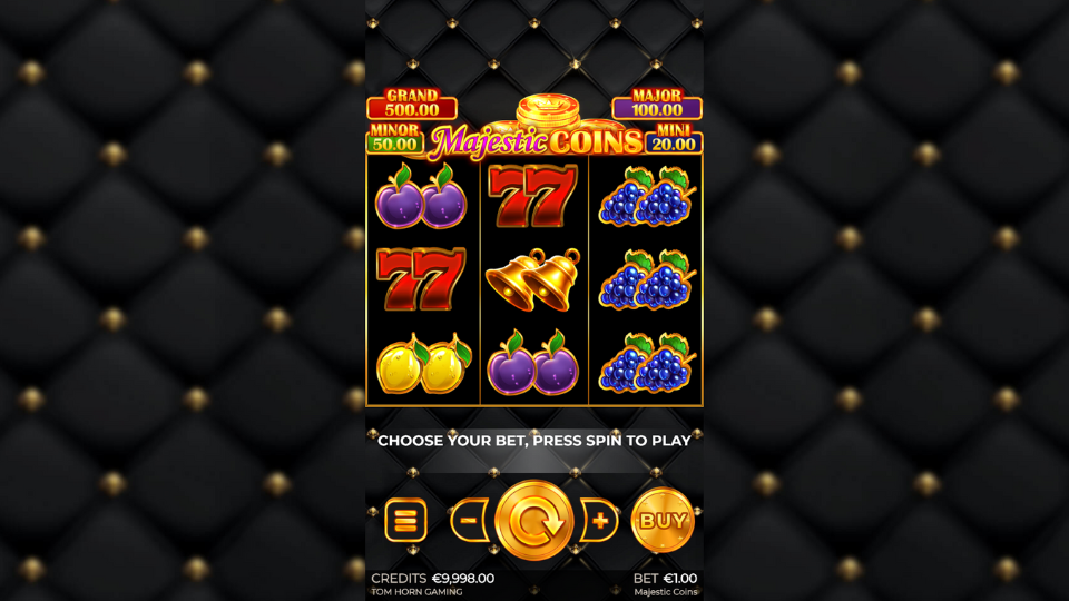 Tom Horn Gaming continues its innovative streak with Majestic Coins—a classic slot with a modern twist designed for players on a winning quest. Launched on February 18, 2025, this game is set on a sleek black 3×3 reel grid featuring 5 fixed win lines.