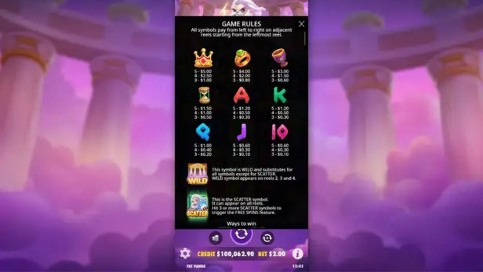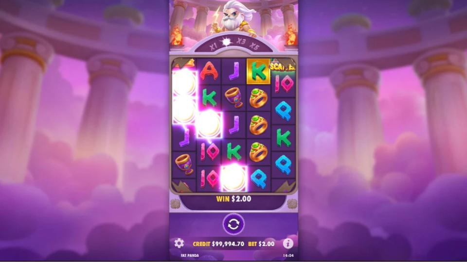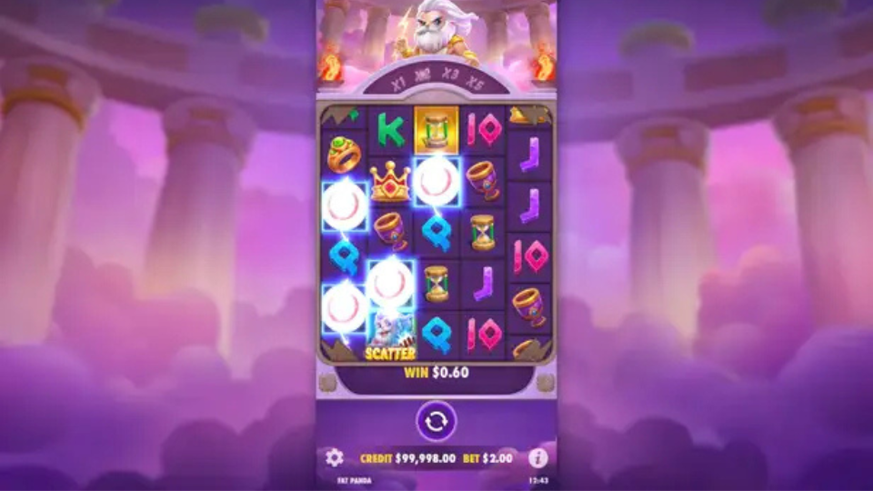 - Wild: Wild symbol represented by Zeus-themed “Olympus” icon.