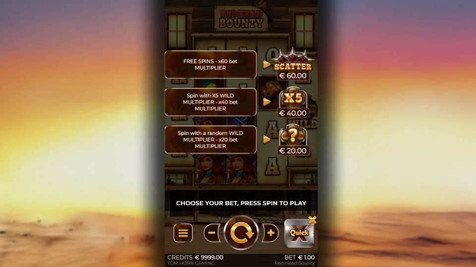 - QuickX xRandom (20x bet): Guarantees a Bounty Respin round with a random wild Multiplier.