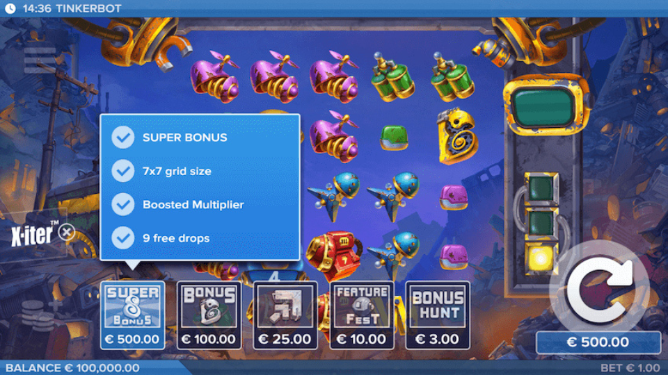 - Bot Frenzy: The feature activates when all payout symbols are removed. Awards additional botboxes, potentially leading to a chain reaction of bonus features.
