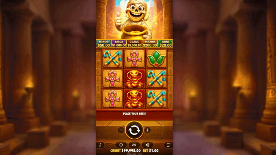 Tut’s Treasure Tower is an Egyptian-themed slot from Pragmatic Play that focuses on treasure hunting within a mystical temple. The game is built around a distinctive 3×3 grid and centers on collecting golden Money Symbols to unlock its main bonus, the Lucky Respin Tower, where the largest prizes are found.