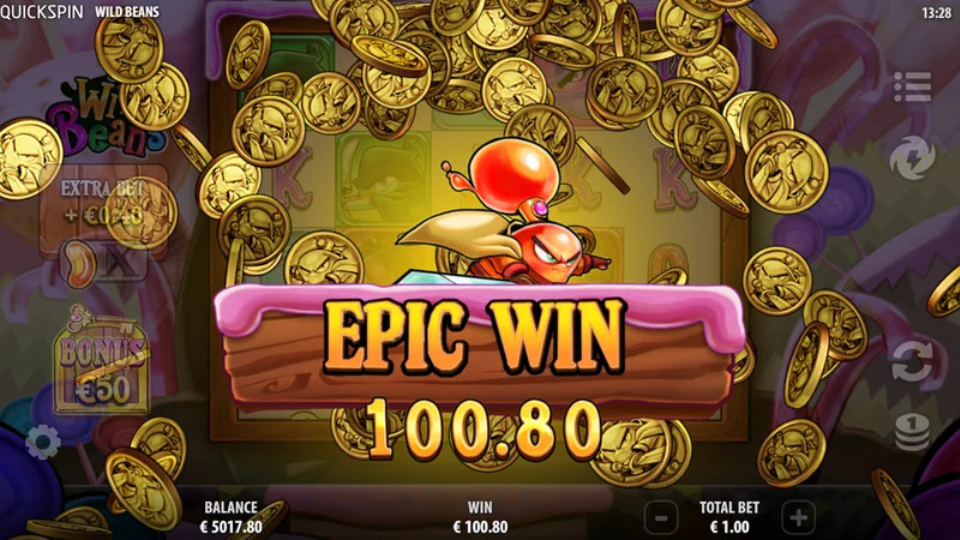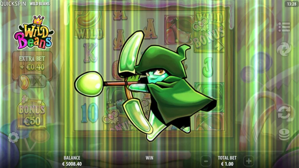 - Extra Bet option (1.4x the bet) increases the odds of triggering Wild Bean modifiers in the base game.