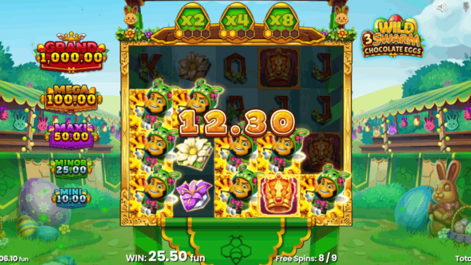 Wild Swarm 3 Chocolate Eggs is the third installment in the popular series from Push Gaming, presenting an Easter-themed adventure. The game features bright, colorful visuals with pastel colors, cheerful animations, and an upbeat soundtrack, all centered around chocolate eggs, bees, and spring seasonal elements. Its distinctive mechanics combine bee swarm wilds with a chocolate egg collection system for progressive features.
